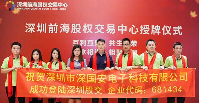 2019年6月19日,深圳市深国安电子科技有限公司作为广东省气体检测仪行业强势登入股交所,挂牌代码为:681434,树立了行业标杆。 人民日报社、凤凰网、中华网、中国财经时报网、腾讯网、新浪网、搜狐网、未来网财经、中国安防行业网、慧聪网、北国网、中国应急网、太平洋安防网等众多媒体进行了报道。